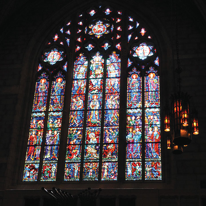 Virtually every Princetonian goes through the main doors of the University Chapel for Opening Exercises. The pomp and circumstance of entering the Chapel, however, might distract many a fresh-faced student from appreciating one of the campus’s great works of art: the massive stained-glass window over that entrance. (See below.) It’s called “The Second Coming of Christ,” and it’s the work of Nicola D’Ascenzo.