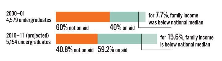 Beginning in the late 1990s, Princeton’s trustees approved a series of financial-aid enhancements that culminated with the January 2001 decision to replace loans with grants. Ten years later, the number of aid recipients has significantly increased, and the no-loan model has influenced the aid programs of several peer institutions.