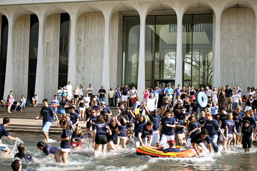 James Fitzgerald, creator of the fountain in front of Robertson Hall, named his work the “Fountain of Freedom” to symbolize a vision of lasting world peace – but to these Woodrow Wilson School seniors, the fountain represents freedom of a different sort. Following tradition, the students celebrated April 7 after handing in their theses. This year, even the weather was on their side, with temperatures in the upper 80s and the magnolias lining the plaza in full bloom.
