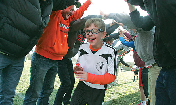 For the last five years, the men’s soccer team has had a strong connection with Derek Watson, an eighth-grader who has a meningioma that has led to complete ptosis, or drooping of the upper eyelid, of his left eye.