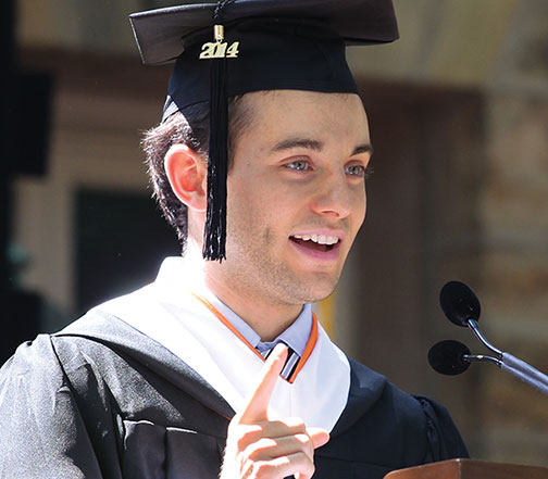 “A few weeks ago we all sat taking the senior exit survey. ... For me there was one question that stood out: It asked me if after four years here, I was more confident in knowing now what I wanted to do with my life than I was when I entered, and I said no. I said no because Princeton gave me the courage to explore and engage with the things I didn’t know I liked.”