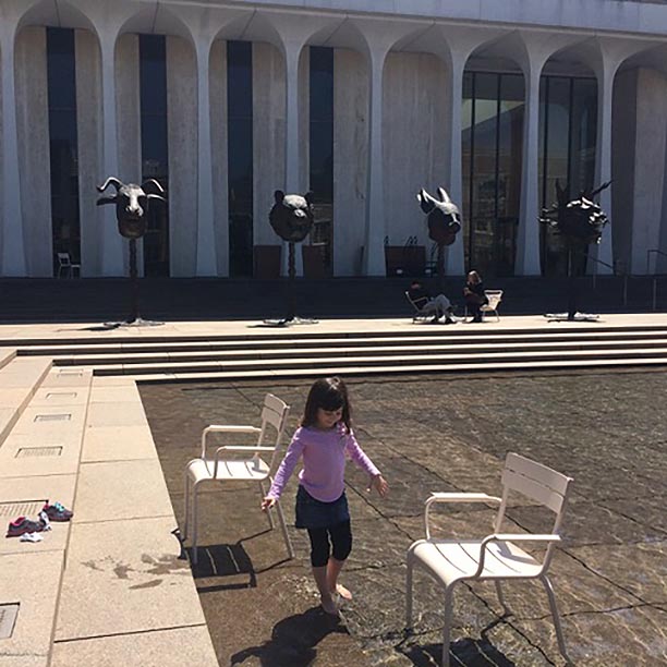 “A week before my job interview at PAW, I visited campus for the first time. It was April 2016, and my 5-year-old daughter, Sophia, tagged along. Immediately, Princeton’s campus kicked her imagination into overdrive, a land full of ‘castles’ surrounded by ‘enchanted forests.’ Just when I thought her delight had peaked, Sophia caught sight of students lounging in plastic chairs in the ankle-deep waters of the Scudder Plaza fountain. My alma mater, the University of Wisconsin–Madison, has its own campus fountain that is regularly coopted for cooling off (mostly by students in rolled up pants and the occasional dog), so I consented to her wading in. As Sophia sloshed around, scavenging for dead leaves and coins, the connection between this fountain and the one from my Madison days (and some sweltering nights) set in, and all at once I could very clearly envision myself working here. Then, the glittering ripples on the water led me, with a sharp, bittersweet thrill, to another possible future: to Sophia reveling in this fountain — as a Princeton student. Apparently, the magic of campus had ignited my imagination, too.”