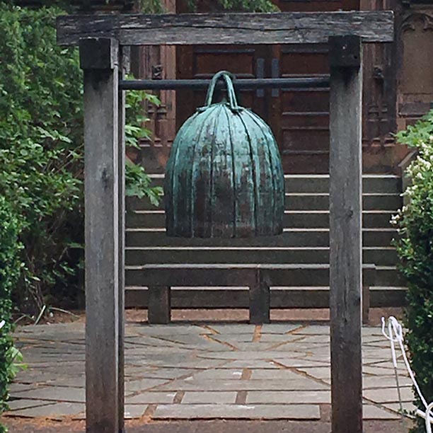 Two years later, the University opened this small memorial garden on the west side of Chancellor Green. Each year, a short and moving service takes place there, with prayers from different faiths, a haunting piece of music, and a moment for private reflection. The service includes the ringing of this bronze bell, Remembrance, by the potter Toshiko Takaezu, who taught at Princeton. The people who gather in the garden are always comforting to each other, and there is no better place on campus to renew a sense of peace.”