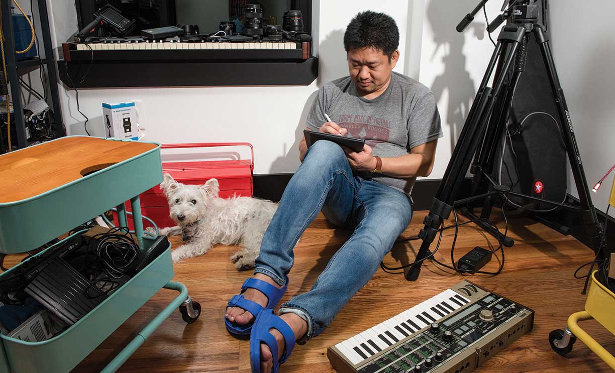 TODAY, CHOI LIVES with his husband, Elon, their dog Tummy, and their cats Dorothy and Lucy near the southeast corner of Brooklyn’s Prospect Park, in a modern building above a combination Carvel and Cinnabon. His office doubles as a music room — there are two cameras he bought for his music videos, plus microphones, a keyboard, a guitar, and vinyl copies of his albums. One bookcase is full of Dungeons and Dragons and Star Wars role-playing games. On pages of a waiter’s notebook — lined up along the wall on a track as in a restaurant kitchen — he keeps track of his pro bono immigration clients, children he’s helping to apply for legal permanent-resident status. Behind the door is his violin, which he plays from time to time.