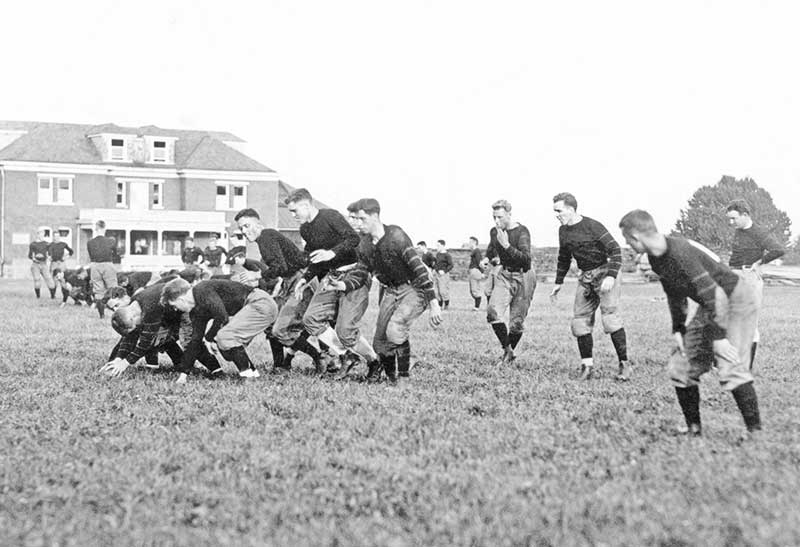 Of the 28 national championships claimed by Princeton, the NCAA recognizes 15 — all 1922 and earlier — tying Princeton and Alabama for second, behind Yale’s 18 (the last in 1927). The sport caught on quickly after that first Rutgers game, with Eastern schools dominating it for half a century until Notre Dame, Michigan, Ohio State, and others began their ascendancy. The unbeaten 1922 Tigers were the “Team of Destiny,” a sobriquet bestowed by sportswriter Grantland Rice after Princeton turned back then-Big Ten powerhouse University of Chicago at Stagg Field in the first college game broadcast nationally on radio. The heroes for the visitors, who had trailed 18–7, were Harland “Pink” Baker 1922, Oliver Alford 1922, and sophomore Charlie Caldwell ’25, who stopped the Maroons’ fullback on the one-foot line to secure the 21–18 win.
