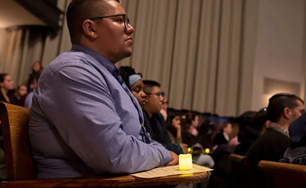 “This is an incredible showing of solidarity,” said Rochelle Calhoun, vice president for campus life. “The Princeton community will always stand up for our collective humanity.” The vigil, moved indoors because of rain, was held as students returned to campus after fall break last week.