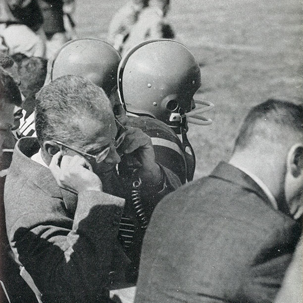 Head coach Charlie Caldwell ’25 devised the system in the early 1950s, assisted by coaches, faculty, and staff who combined football and computational expertise. His data collection was extraordinary: Spotters would create a detailed account of the game, and the coaches would follow up with analysis of the game films, assigning a grade, on a scale of 1 to 7, for each player on each play. (The scale mirrored Princeton’s academic grades at the time, since the cards were coded by operators in the registrar’s office.) After Caldwell’s death in 1957, his successor, Dick Colman, carried the work forward.