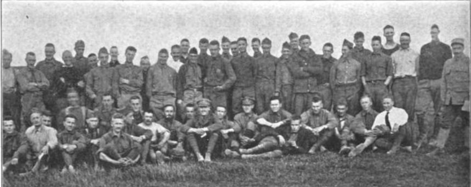 “When a battalion goes into the trenches it means that they wear their clothes all the time they are there. In the front trench boots are not taken off but in the support and reserve trenches a few hundred yards back they are removed. You can well imagine what condition the men are in when they come out. Water for washing is gotten from shell holes and there is no lack of them, but it isn’t Eau de Cologne. Water for drinking and cooking is hauled up. The dugouts in the front line are thirty feet deep and pretty safe from shell fire. I spent part of each day in the front trench and one day both sides started a small bombardment, just to put the 'wind up' each other. Each size shell has a different sound and you catch on to what size shell is flying over. Of course it was music to my ears and the shells varied from tenor to bass. The 'Flying Pig' is a British shell and 1 hope many of them will fall on the German Pigs. They are somewhat like the ‘Minnies’ and raise hell with the trenches. One part of the front line is only twenty-five yards from the German trench, and that was the nearest I got to the Hun. The mud is something awful and you soon get caked with it. The bottom of the trenches are lined with a small board walk or ‘duck board,’ as they are called, raised a foot from the bottom of the trench, and they are therefore dry. You can’t imagine what amount of work it is to dig these trenches and the material used for riveting. Corrugated iron, chicken wire, thousands of sand-bags, boards, and anything else that will keep the sides from caving in. I don’t know what I am going to do. I leave here tomorrow for our headquarters ‘Somewhere in France’ and will find out there. I am beginning to think that it is a long, long trail winding between thee and me.”
