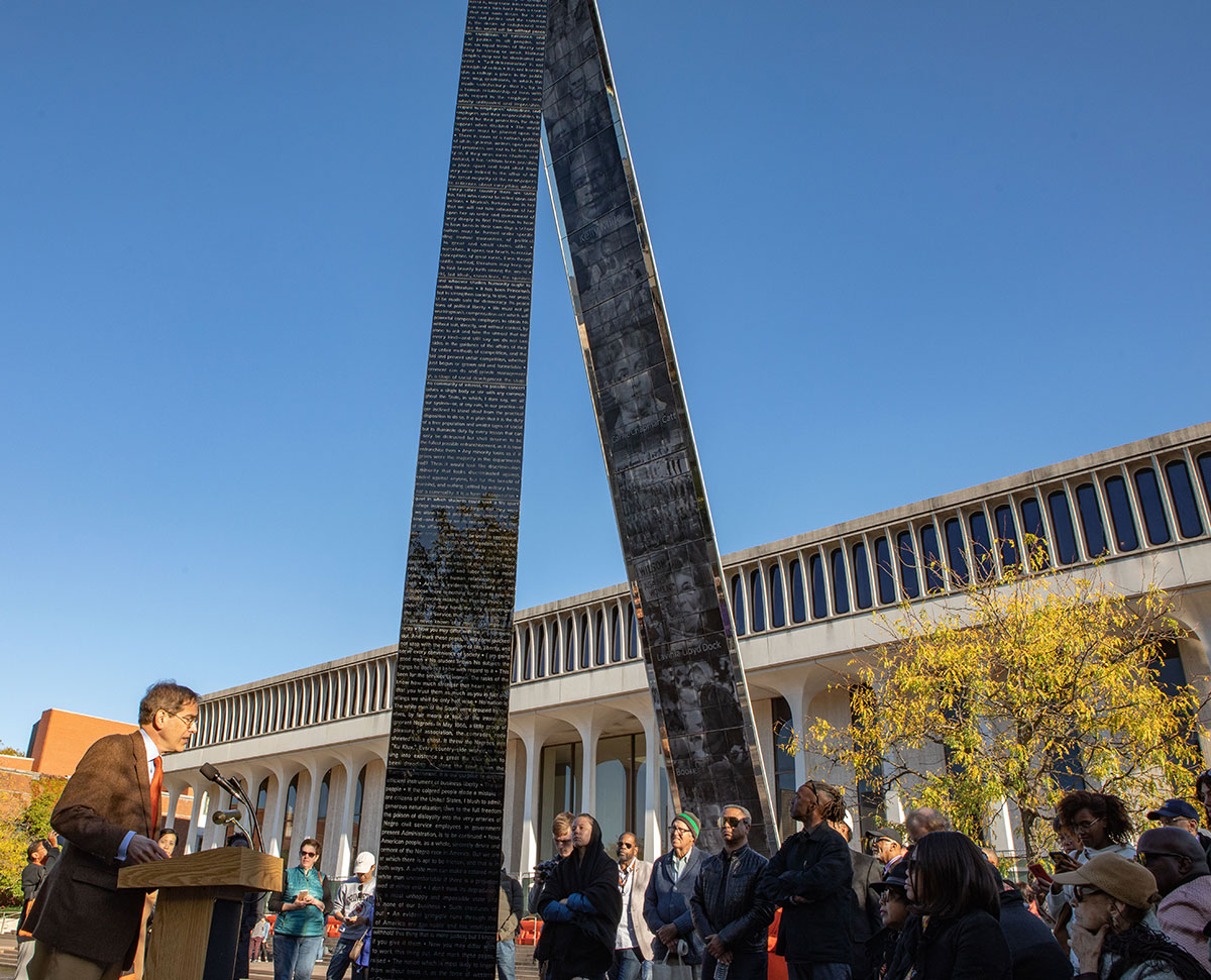 Hundreds of alumni shared their views with the Committee, which released its final report in April 2016. While the Committee said the University must be “honest and forthcoming” about its history and recognize Wilson’s failings, it stopped short of recommending renaming the Wilson School or Wilson College. Princeton’s trustees approved several additional actions recommended by the committee, including creating a “pipeline program” to encourage more students from underrepresented groups to pursue doctoral degrees and careers in academia; adding campus art and iconography that reflects Princeton’s diversity; updating the University’s informal motto; and installing a permanent marker near Robertson Hall that “educates the campus community and others about both the positive and negative dimensions of Wilson’s legacy.” The marker, created by artist Walter Hood, was installed in October 2019 and drew new protests and continued debate over Wilson’s racial views.