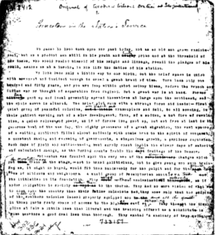 It is only this first half of the oration that in any strict sense justifies the speech’s title. But this part was composed almost by prescription to fulfill its expected function: the sesquicentennial celebration, after all, had to include a survey of the institution’s past. But it was not the historical elegy that most concerned Wilson and excited his listeners. Writing in his diary, Horace Elisha Scudder summarized Wilson’s address as “a well considered historical discourse closing with a strong plea for the humanities in the college course.” Another listener, Henry Newell Hoxie, a teacher at the Haverford School, congratulated Wilson on “the bright & stirring outline of the college history”; but what impressed him most was Wilson’s stress on “the higher civilizing influences of Europe” and his “reference to the worth of the classic literatures.”