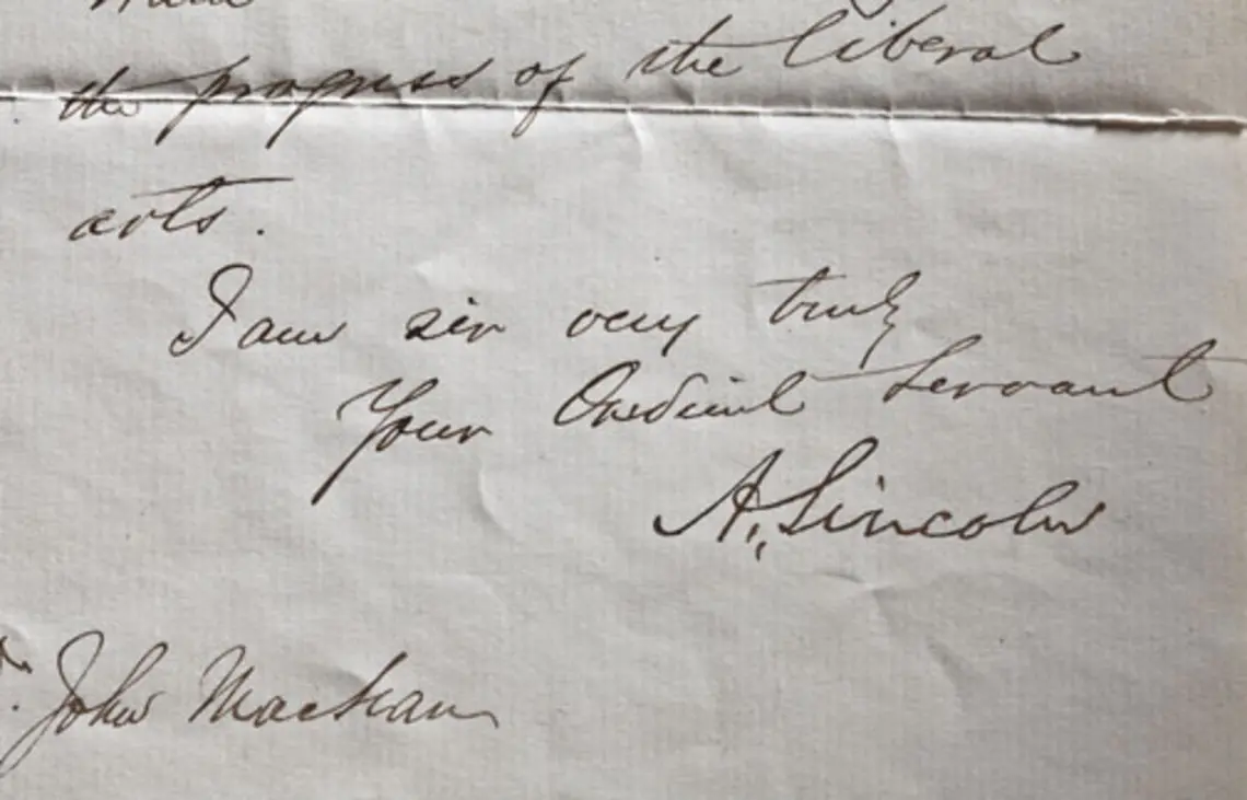 What: After Abraham Lincoln was re-elected U.S. president, Princeton trustees awarded the former Illinois lawyer a doctor of laws degree. Lincoln’s handwritten reply to President John Maclean (Dec. 27, 1864) is a University treasure.
