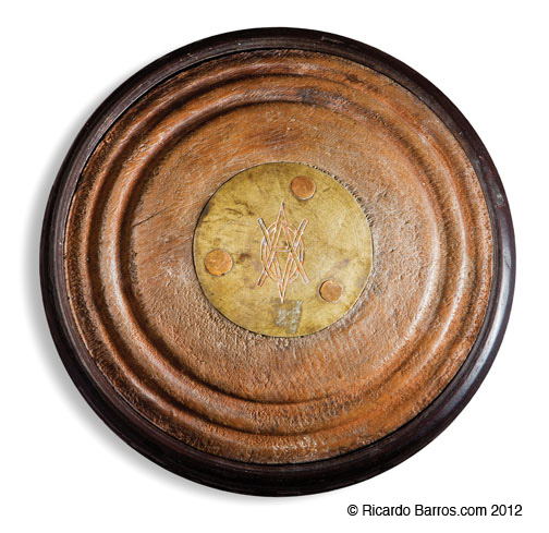 I wanted to make sure that the discus in the photo was the one Garrett threw (which in fact it is). In a letter to Raycroft, Garrett reported he had two discuses: “When you receive them, you can readily understand that the damaged one was lying on the ground at the stadium when we Princeton youngsters visited it the afternoon of the Sunday before the games. I experimented with it a few times and then determined to take part in the event just of the fun of it. The other undamaged discus was the one used in the games. Immediately after the games were held, the Greek authorities had a monogram placed on one of the brass plates and presented the discus to me. This monogram, I presume, can be deciphered by the aforementioned Greek scholars a Princeton.”