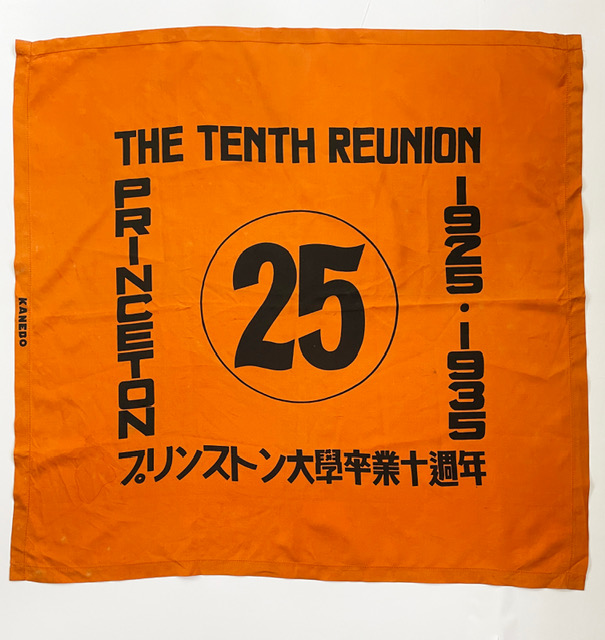 Late last year, Rosen brought this scarf to the committee, which fell instantly into a two-pronged attack. The linguistic crowd quickly found the Asian script (Japanese) translates roughly to “Princeton Tenth Anniversary” or a close version of the English, and the implication there was a Japanese flavor to the class reunion activities. Meanwhile, the relic-focused crowd tried to come up with some sort of backstory to the Class of 1925’s Japanese theme (if indeed it was one) and what it might be doing at Princeton Reunions four years after the Empire of Japan wrested Manchuria from the internally conflicted Chinese.