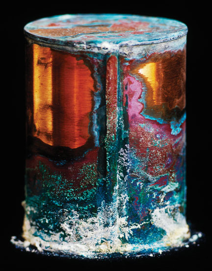 The copper canisters, left, are among some 3,500 containing remains of individuals unclaimed by their relatives when they died at a psychiatric hospital, in Salem, Ore., between 1883 and the 1970s. David Maisel ’84’s photographs of some of the canisters, most of which long ago lost the labels identifying the individuals, are collected in “Library of Dust,” published by Chronicle Books this month. The hospital, formerly known as the Oregon State Insane Asylum and now as the Oregon State Hospital, was the site of the film “One Flew Over the Cuckoo’s Nest.” Maisel’s photographs of the canisters are featured in exhibitions at the Portland Art Museum, on view through Dec. 6, and at Portland’s Blue Sky Gallery, running through Nov. 2. He was scheduled to speak about his project at Princeton’s School of Architecture earlier this month.