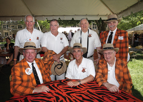 Our theme, as it has been for 59 years, will be our Oriental Hapi Coats, to be worn in the P-rade, in which we will be accompanied by an orange-and-black Volkswagen and a 1954 Jaguar. Our headquarters will be at the head of Princeton Stadium. At 1 p.m. Friday we will hold our class memorial service at the Chapel, and a class stone dedication behind Nassau Hall with President Eisgruber ’83 will be at 2 p.m. Our alumni symposium will be Saturday morning. Entertainment will include the Jim Freund ’56 Trio Thursday and the Stan Rubin ’55 Orchestra featuring Ed Polcer ’58 Friday.