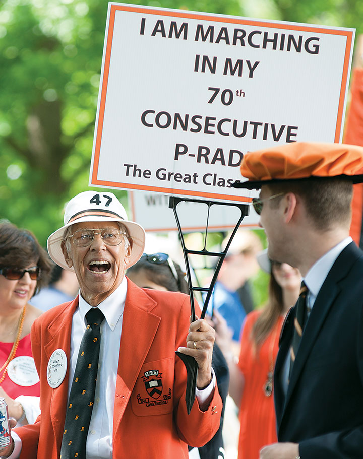 Joseph Schein ’37, recipient of the Class of 1923 cane, who walked the P-rade route.