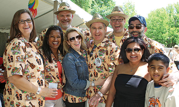 From left: Bridget Wood s’97, Ven Pillay s’97, Matt Wright ’97, Louise and Matt Boyle ’97, Matt Wood ’97, and Sandhya and Neil Chheda ’97 with son Vinay.