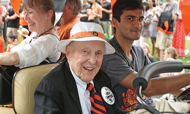Norm Carter ’38 and driver Hamza Chaudhry ’19