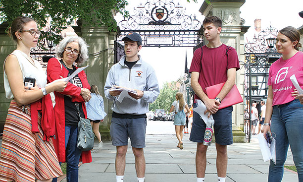 Ben Bollinger ’21, center, leads a tour of “Performance Walks of Race and Protest Through the Campus.”