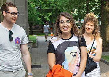 A student protest in May, relating to Princeton’s handling of sexual-misconduct cases under Title IX, filtered into the alumni ranks as P-rade marchers added purple touches to their Reunions costumes to demonstrate solidarity with sexual-assault survivors and push for changes in Princeton’s policies. Other alumni wrote postcards addressed to their government representatives in support of grad student Xiyue Wang, imprisoned in Iran since early 2017 on espionage charges while he was researching his dissertation — charges the University, the United Nations, and others say are false. Classmates of journalist Maria Ressa ’86, who is under attack by the government of Philippines president Rodrigo Duterte because of reporting by her media outlet, distributed square pins with her image.