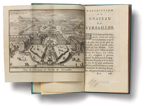 This official guidebook to Versailles, first published in 1674, is included in “VERSAILLES ON PAPER,” an exhibition in Firestone Library’s main gallery through July 19. On display are books and prints from the 17th and 18th centuries that document the development of the palace and gardens during the reign of Louis XIV. The exhibition’s website is http://rbsc.princeton.edu/versailles/.