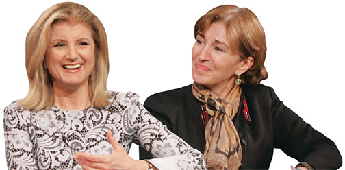 ARIANNA HUFFINGTON, left, came to Princeton April 22 to talk about the benefits of digital detox, nap rooms, and getting enough sleep, telling students and other community members, “We now take better care of our smartphones than we take care of ourselves.”