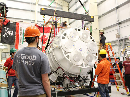 The three-ton Suborbital Polarimeter for Inflation, Dust, and the Epoch of Reionization (also known as SPIDER) collected cosmic microwave background data in a 16-day balloon flight over Antarctica in January. The Princeton-led team had to break SPIDER into pieces for shipping and then reassemble it near the launch site, above.