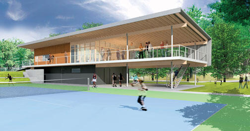 The LENZ TENNIS CENTER, home of the men’s and women’s tennis teams, is undergoing a major reconstruction project to upgrade locker rooms, offices, meeting space, and viewing areas. Dattner Architects of New York City designed the new facility, shown in the rendering above. Work will not affect the playing courts and should be completed by the end of the academic year, according to Princeton’s Office of Design and Construction.