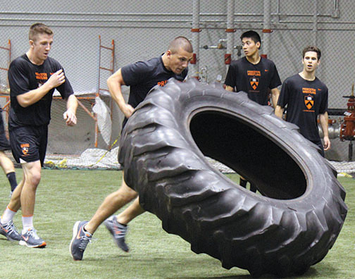 A new sport? Not yet, but members of the MEN’S HOCKEY and WRESTLING teams competed last month in conditioning events that included flipping a giant tire. The wrestlers won the annual contest.