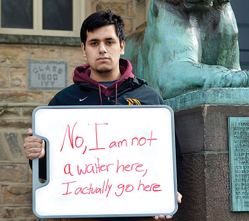 These are just some of the messages featured in the Black Student Union’s photography campaign, “I, Too, Am Princeton.” On April 23, more than 50 students gathered on the front campus to create images highlighting the experiences of Princeton students of color. The photos are posted on the Web: itooamprinceton.tumblr.com.