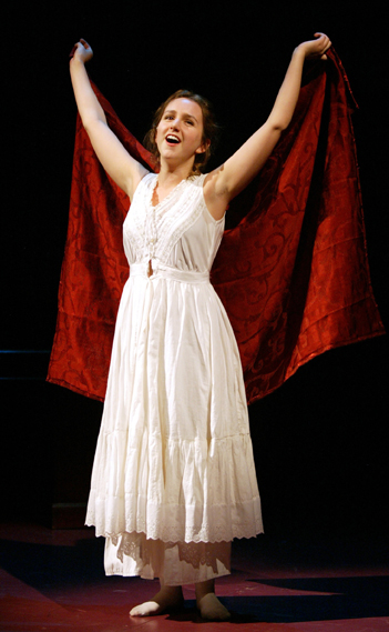 Laura Hankin ’10, right, sings "I Could Have Danced All Night" in the Princeton production of My Fair Lady. Hankin is playing the lead role of Eliza Doolittle for her theater program senior thesis, and fellow senior Shawn Fennell plays Professor Henry Higgins. Suzanne Agins ’97, a lecturer in theater in the Lewis Center for the Arts, is directing the production, with book and lyrics by Alan Jay Lerner and music by Frederick Loewe.
