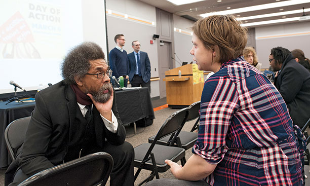 Cornel West *80, professor emeritus of African American studies, urged those in the audience to make their voices heard. Hatred and discrimination “bring out the best of the country,” West said, referring to protests and demonstrations against actions taken by the Trump administration. “The problem simply is, we’re not winning — and that’s why organizing is important.” By A.W.