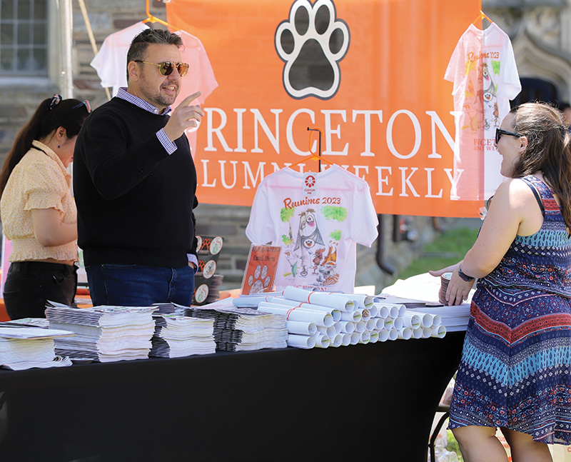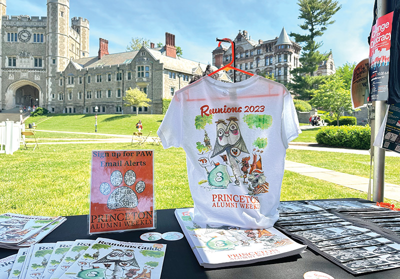 On the CampusA Thank You From PAW at 2023 Reunions Published June 29, 2023The Princeton Alumni Weekly staff would like to send a locomotive out to everybody who attended Reunions and stopped by our tent to pick up a few goodies and say hello. We hope to see you next year. No responses yetJoin the conversation Name Email Princeton affiliation - Select -AlumniFacultyStaffStudentCommunity MemberNon-alumni ResponsePlain textFull name and Princeton affiliation (if applicable) are required for all published comments. For more information, view our commenting policy. Responses are limited to 500 words for online and 250 words for print consideration. The Latest See all AdministrationEisgruber Letter Warns University Community of Additional Budget Cuts Latest NewsA Princeton Neuroscience Professor Is Running For Congress President’s PageThe Humanities at Princeton: Our Future Is Bright News + FeaturesTo Be ‘Welcoming,’ Town of Princeton Adds Housing Lives Lived & LostDavid Feinman *62 Lived for Service, Travel, and Adventure Related News AdministrationEisgruber Letter Warns University Community of Additional Budget Cuts Latest NewsA Princeton Neuroscience Professor Is Running For CongressProfessor Samuel S. Wang, a longtime election reform advocate, is among the Democratic primary candidates for New Jersey’s 12th District President’s PageThe Humanities at Princeton: Our Future Is Bright 1 Response