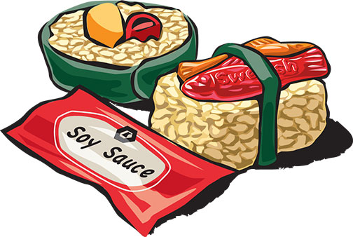 This team used the assignment as a chance to comment on cultural appropriation. By creating sushi rolls made out of candy, they attempted to demonstrate the ways in which Americans familiarize foreign cuisines to make them more comfortable, something that may occur at the risk of corrupting the essence of this Japanese food.