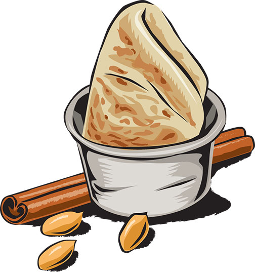 Ingredients: wheat flour, rice flour, water, yeast, salt, vegetable oil, sugar, brown sugar, peanuts, cinnamon