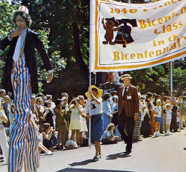 PAW’s 1976 Reunions issue, appropriately dated July 4, featured photos of a uniquely colorful P-rade that blended orange and black with red, white, and blue, in honor of the nation’s bicentennial year.