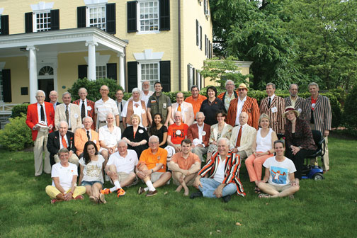Class scribes and memorialists are pictured at Maclean House May 31 during PAW’s annual reception in their honor. Seated in the front row are, from left: Catherine Turner Carter k’40, Jen Adams ’01, Jay Siegel ’59, George Brakeley ’61, Massie Ritsch ’98, Mark Swanson ’71, and Amy Errington Oversmith ’94; middle row: Warren Eginton ’45, Tom Wolf ’48, John Stone ’53, Janet Grace w’44, Nina Bahadur ’12, David Bowen ’43, Edward Essertier ’43, Connie Buchanan ’78, Glenn Morris ’72, Class Notes editor Fran Hulette, and Erica Lehrer ’80; standing in back: George Pearson ’47, Alan Mayers ’54, Thomas Meeker ’56, Ralph DeGroff ’58, Tom Newsome ’63 k’36, Jason Eyster ’74, Paul Sittenfeld ’69, Selden Edwards ’63, P.G. Sittenfeld ’07, Charles Ganoe ’51, Jack Doran ’68, Stephanie Anderson ’74, Mike Parish ’65, Sev Onyshkevych ’83, James Barron ’77, Eli Schwartz *60, and Tim Butts *72. Irv Walsh ’41 attended the party but was absent when the photo was taken.