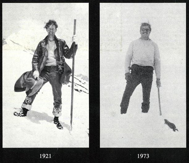 Yet when I reached the top six hours later—so breathless I was now taking four breaths before every step—the snow filled the air in a “white-out,” and I could see nothing at the mighty summit. “Damn you, Richard Halliburton. Damn you.” I kept saying over and over again softly. My companion rushed back almost immediately, but I lingered at the top to commune with the spirit of my mentor.
