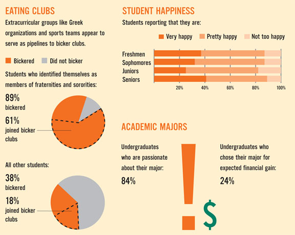 More than 1,100 undergraduates completed the online survey, which asked students about their level of happiness, choice of dining option, and selection of major.