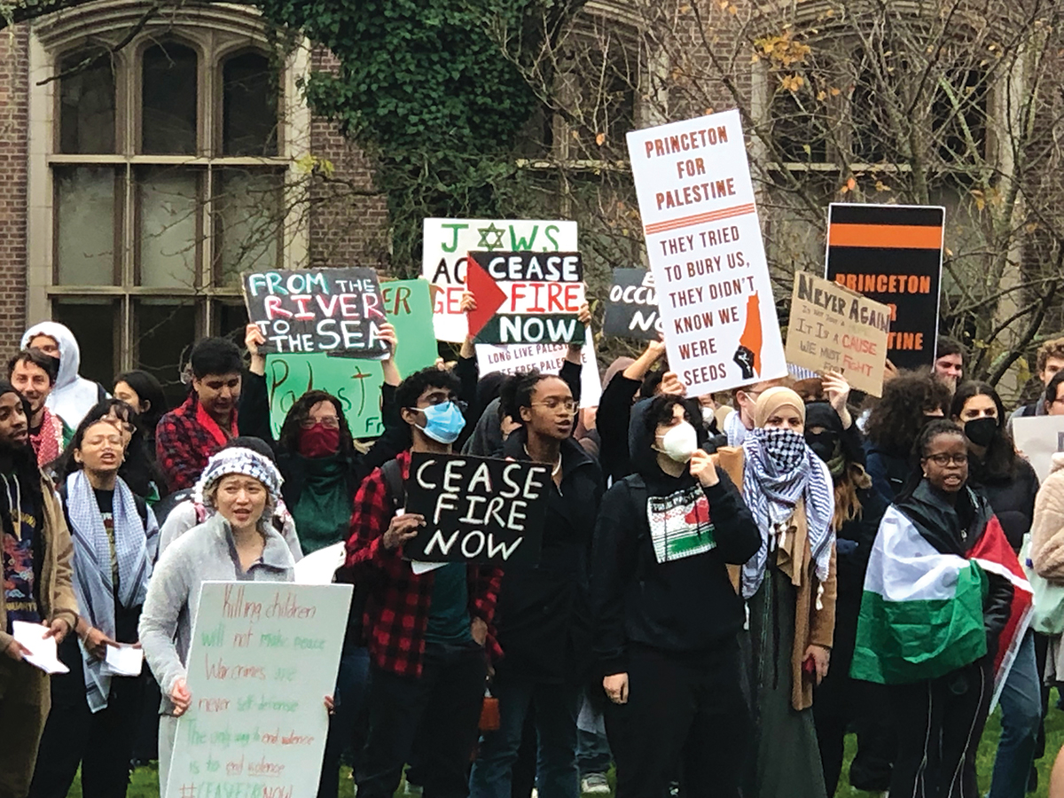 It may be grading on a curve, but at least as of mid-November when this issue went to print, Princeton had avoided the uglier incidents that had taken place at other schools. Cornell, for example, was forced to cancel classes after a student threatened to kill Jews, and a Jewish student was assaulted at Columbia. At Harvard, Yale, Stanford, NYU, and elsewhere, student groups and individual faculty members issued statements that justified or even celebrated Hamas’ terror attacks. Those and other incidents, widely reported in the news media, have led some outsiders to denounce college campuses as hotbeds of illiberalism. Donors at the University of Pennsylvania have threatened to withdraw support unless the administration roots out campus antisemitism.