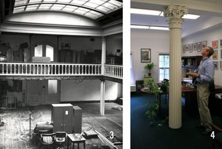 Smith, a program administrator in the ecology and evolutionary biology department and the author of Princeton University, a recent volume in Arcadia Publishing’s Campus History Series, said that the faculty room offers a perfect illustration of those changes. Today, with its long pews reminiscent of the British House of Commons, the room seems like a throwback to colonial times. But in the original Nassau Hall, the room was much smaller and served as the prayer hall. The space was expanded after a fire in 1855, converted to a library, and later refashioned to house the University museum (1), with a second-floor gallery and a skylight in the middle. The current faculty room (2) was not built until 1906.With the new faculty room in place, the museum moved to the east wing of Nassau Hall, on the second and third floors (3). But that space eventually was converted to offices; some offices still contain the ornate columns that stood near the museum’s corners, as Smith found (4).