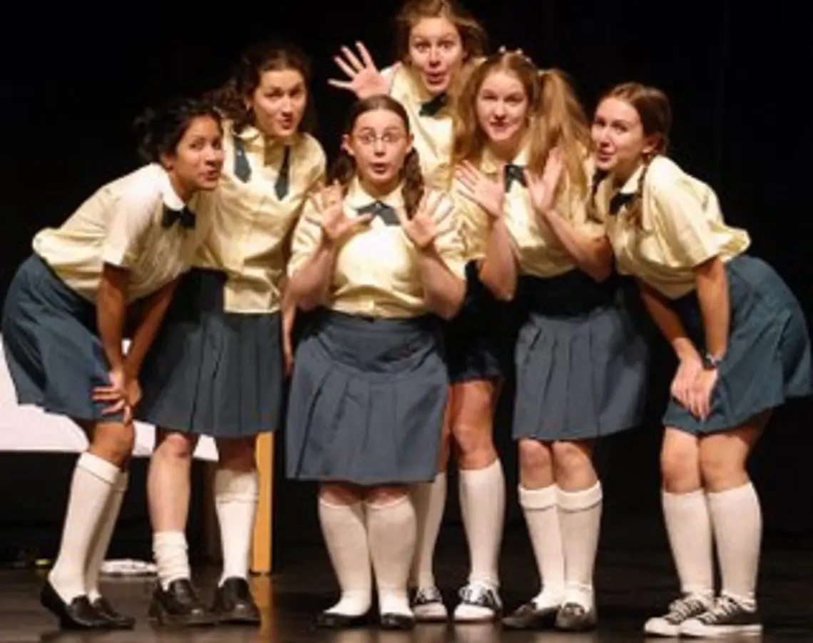 Rehearsing a song called “Don’t Tell Mom” from the new Triangle Club show, “Heist Almighty,” are, from left: Faaria Kherani ’09, Caroline Loevner ’08, Hannah Barudin ’10, Katie Seaver ’10, Katie Benedict ’10, and Laura Hankin ’10. The show will be performed at McCarter Theatre Nov. 10 and 11. Triangle's December tour will include stops in New York, Boston, Washington, D.C., and Richmond.