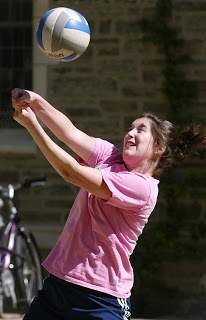 Liz Williams ’09 returns a serve during an impromtu volleyball game on the sand court in Rocky-Mathey courtyard on May 4, the last day of spring term classes. Spring exams for undergraduates begin May 16.
