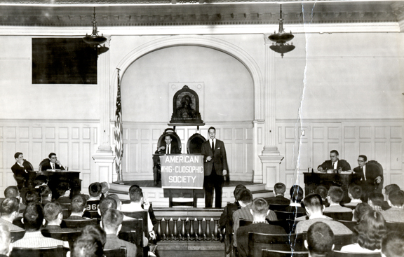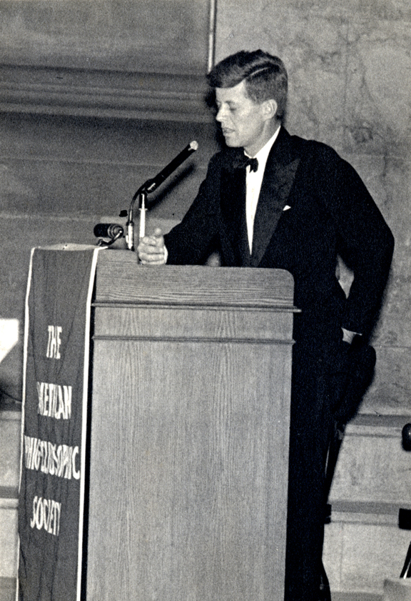 Sen. John F. Kennedy speaks at a Whig-Clio colloquium on the Eisenhower administration May 11, 1954.