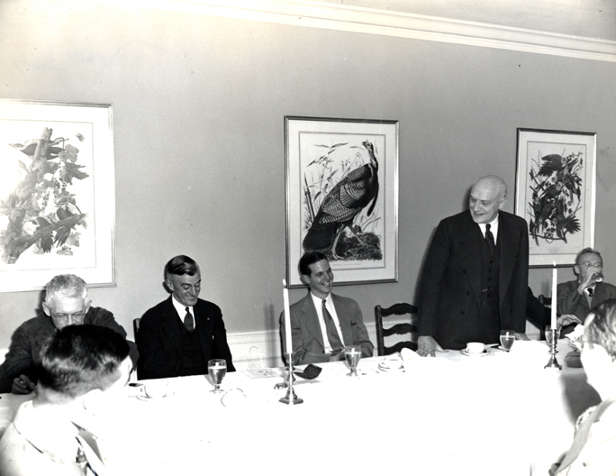 Adlai Stevenson ’22 with Whig-Clio members before addressing the senior class dinner in 1954.