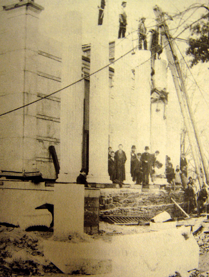 The current neo-classical marble halls are erected, replacing smaller wood and stucco structures built in 1838.