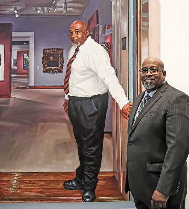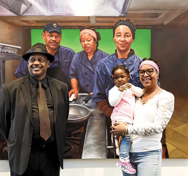 Kaniesha Long, a Campus Dining employee who is featured with two co-workers in the portrait Several Lifetimes, said she was blown away by the art. “I’m proud to be in the picture,” she said.