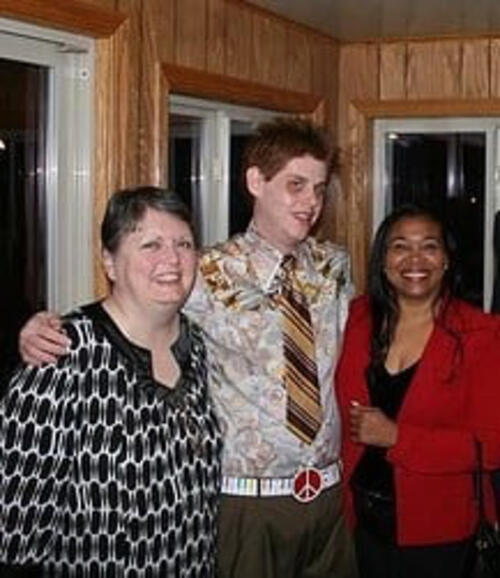 The color photos show Cathy at 20; with Sedgwick County Democratic Party Chair Jason Dilts and Kansas State Sen. Oletha Faust-Goudeau, for whom Cathy was legislative aide; and with John in October 2013.