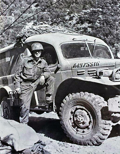Caption: Steve Riford volunteered as an American Field Service ambulance driver at the onset of WWII in 1942, when he turned 18. He helped save numerous lives during his four years of wartime service.