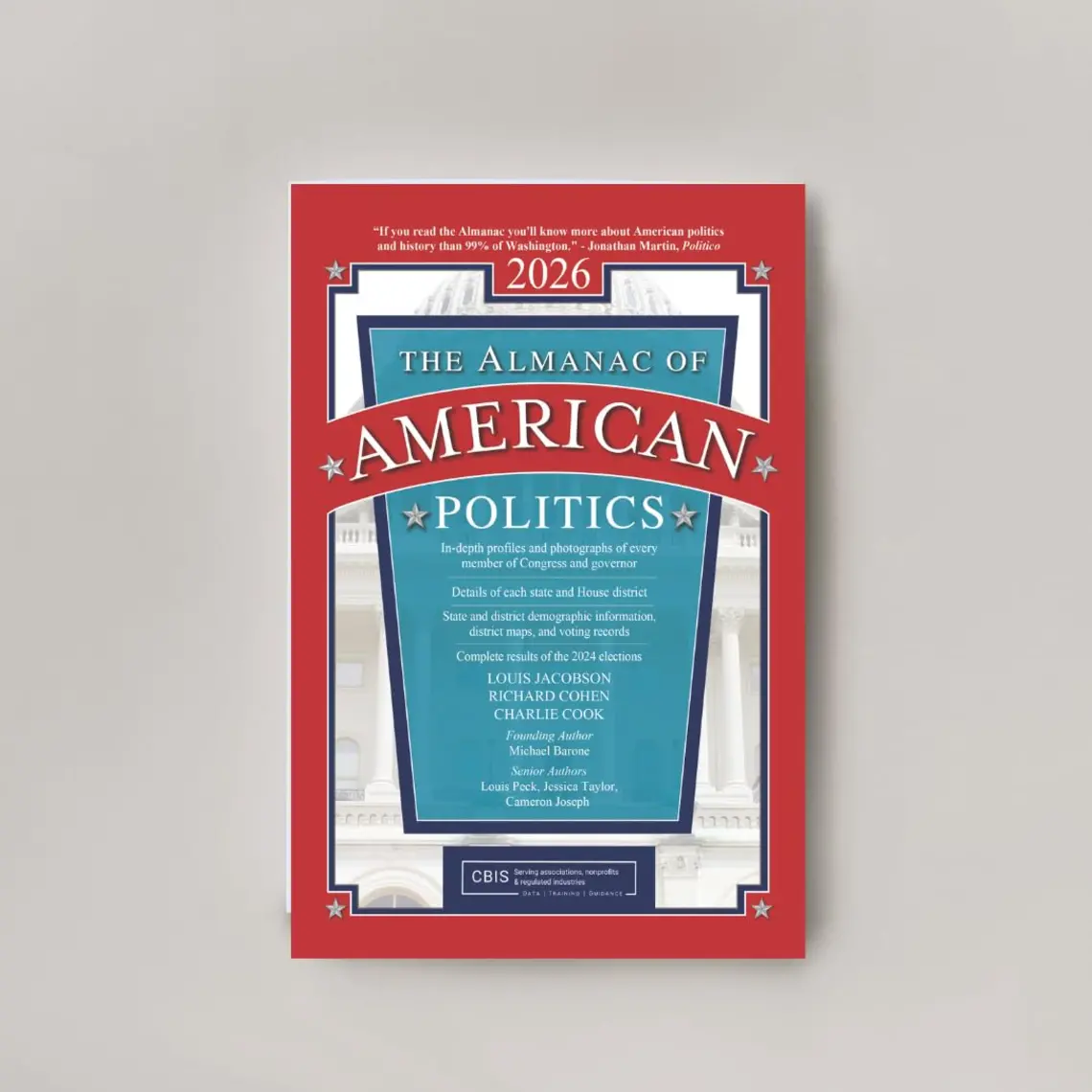 The 2026 edition of the Almanac of American Politics (CBIS), known as “The Bible of American Politics,” features profiles of every senator, House member, and governor. Jacobson, who was named chief author for this edition and has worked on seven previous editions, writes an overview on the current political moment. The almanac also includes details on each state and congressional district as well as profiles of the president and vice president. This book is the holy grail for all there is to know about the political landscape.
